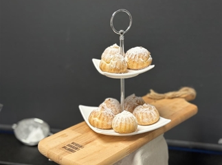 Acht kleine soesjes gevuld met slagroom.